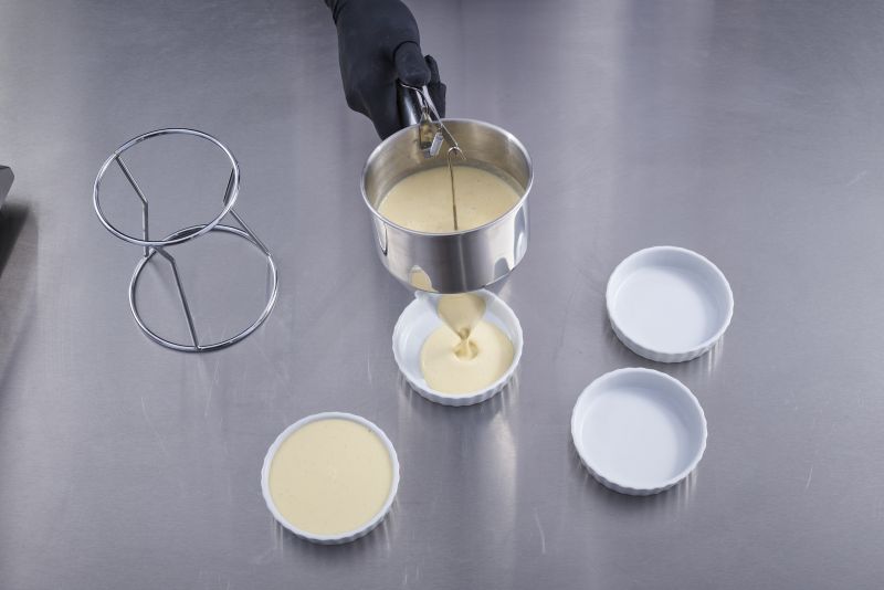 Sử dụng bát sứ chịu nhiệt, lửa để đựng Crème Brûlée.